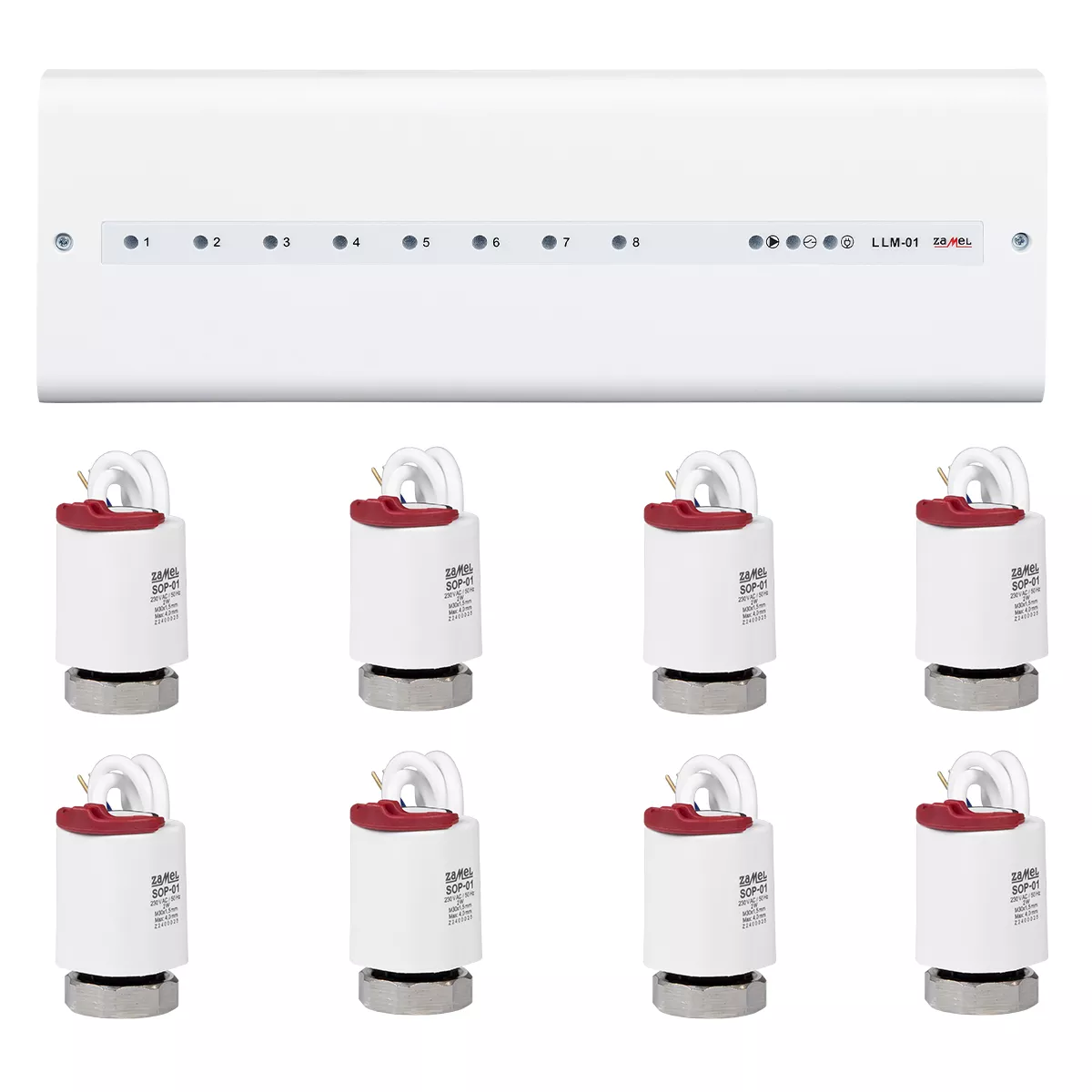 ZESTAW DO STEROWANIA WODNYM OGRZEWANIEM PODŁOGOWYM (LLM-01 x 1 SZT., SOP-01 x 8 SZT.) TYP: ZSP-01