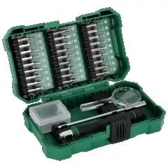 Zestaw bitów precyzyjnych ze stali S2 i akcesoriów, 31elem. STALCO S-13726