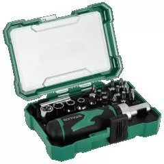 Zestaw bitów ze stali S2 25mm i nasadek z pokrętłem 19elem. STALCO S-13722
